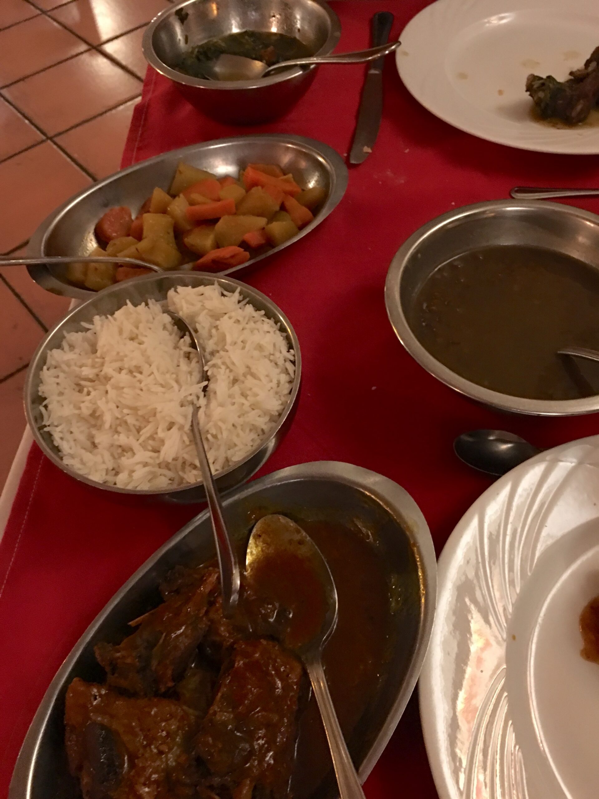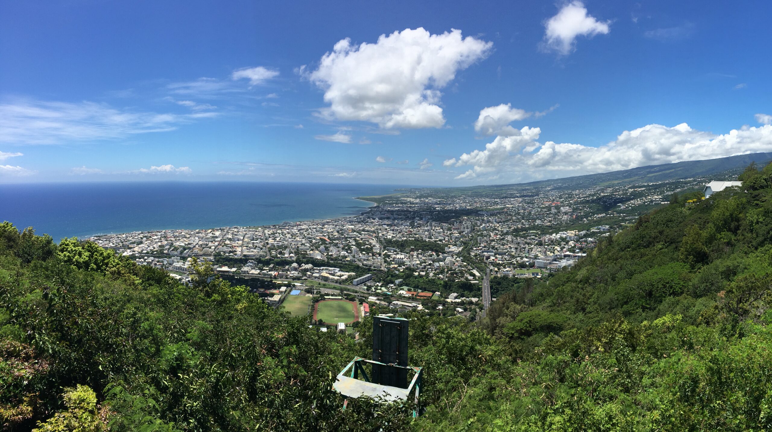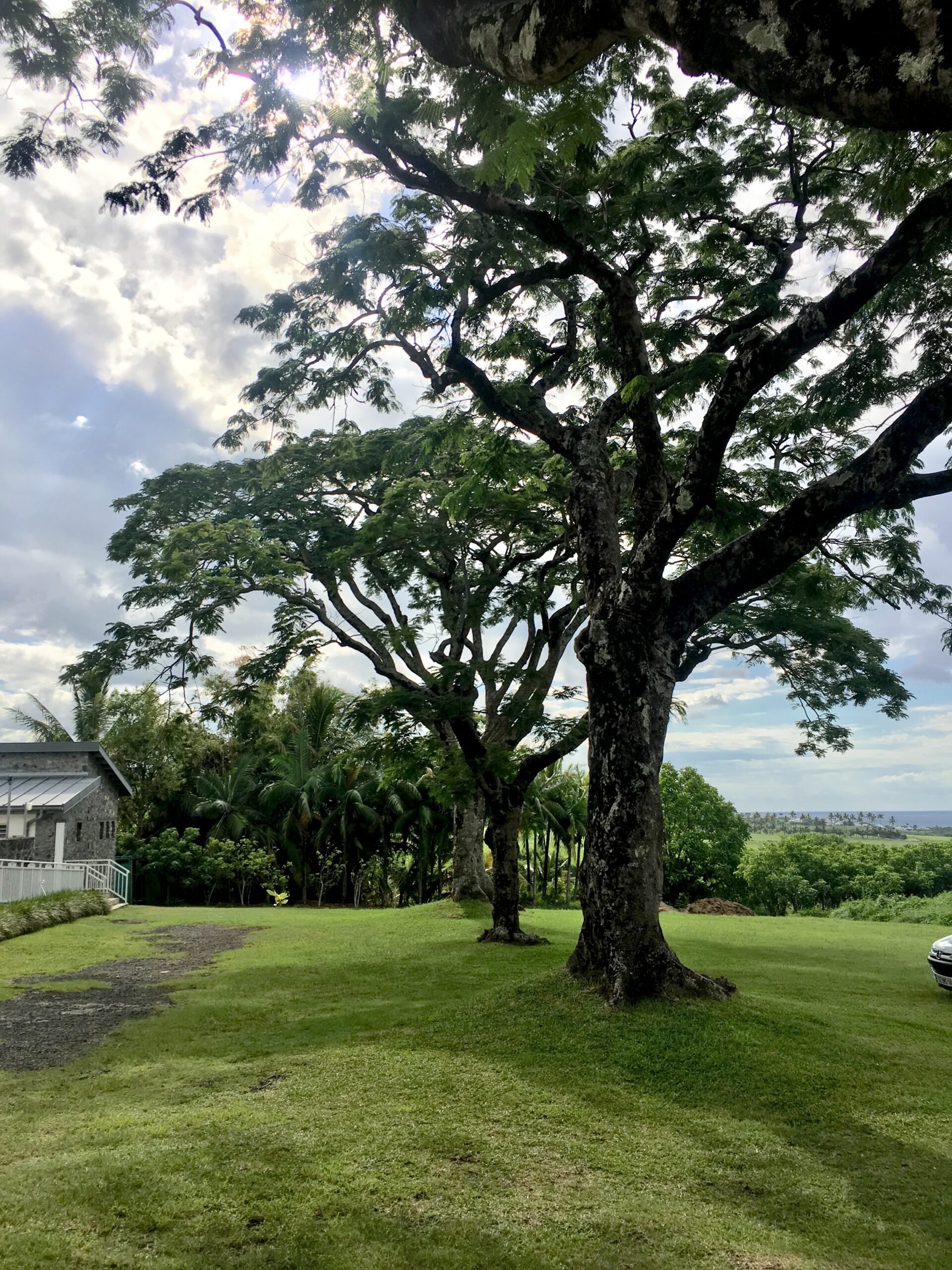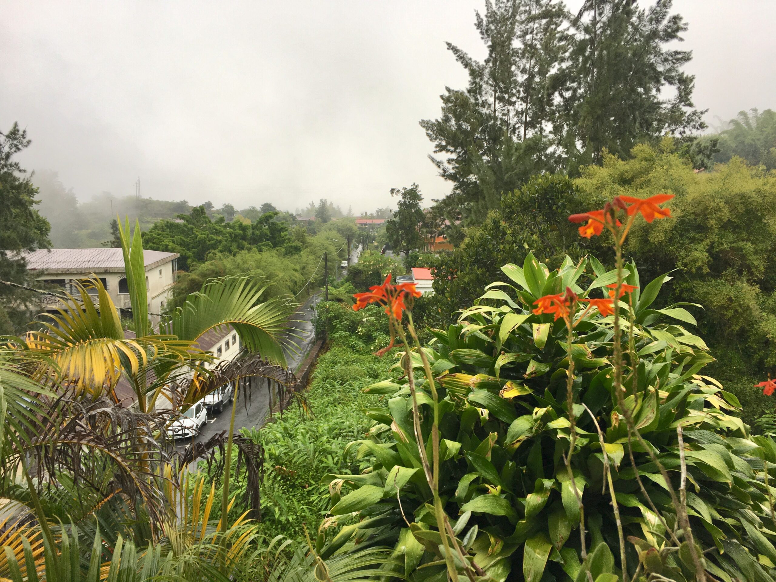 Nach dem Frühstück fahren wir zuerst Richtung Osten bis La Possession und von dort durch besiedelte Berghänge zurück nach St. Denis. Im den Gärten blühen Blumen, dienich als Zimmer- und Kübelpflanzen kenne: Heleconien, Tibouchines, Kurkuma, Begonien, … Es hat Palmen, Farnbäume, Nadelbäume, Flammenbäume und Datura als kleine Bäume. Die Häuser sind bunt: rosa Haus mit gelben Läden, blaues Haus mit grünen Läden, lila Haus mit orangen Läden. Alle haben eine Veranda und hübsche Blechverzierungen am Dachabschluss. Der Ostküste entlang fahren wir weiter mit einem Picknick bei St. André und einem Besuch der “Vanilleraie”.