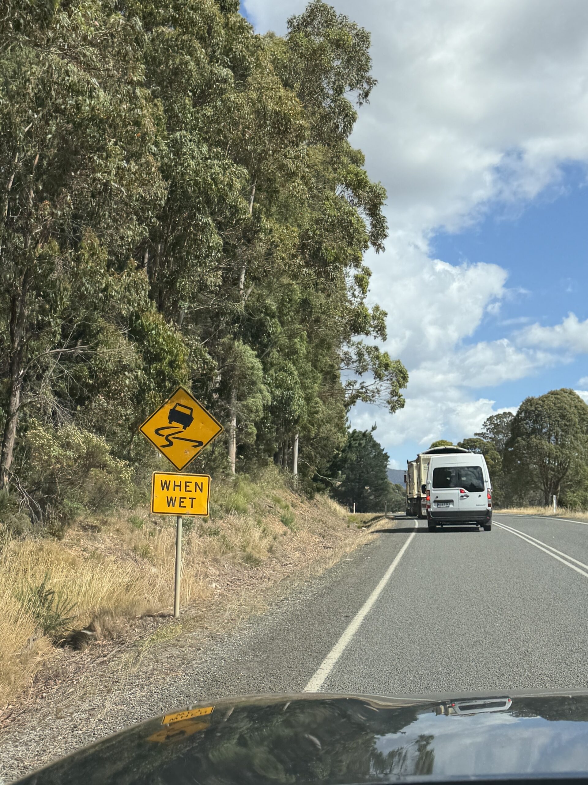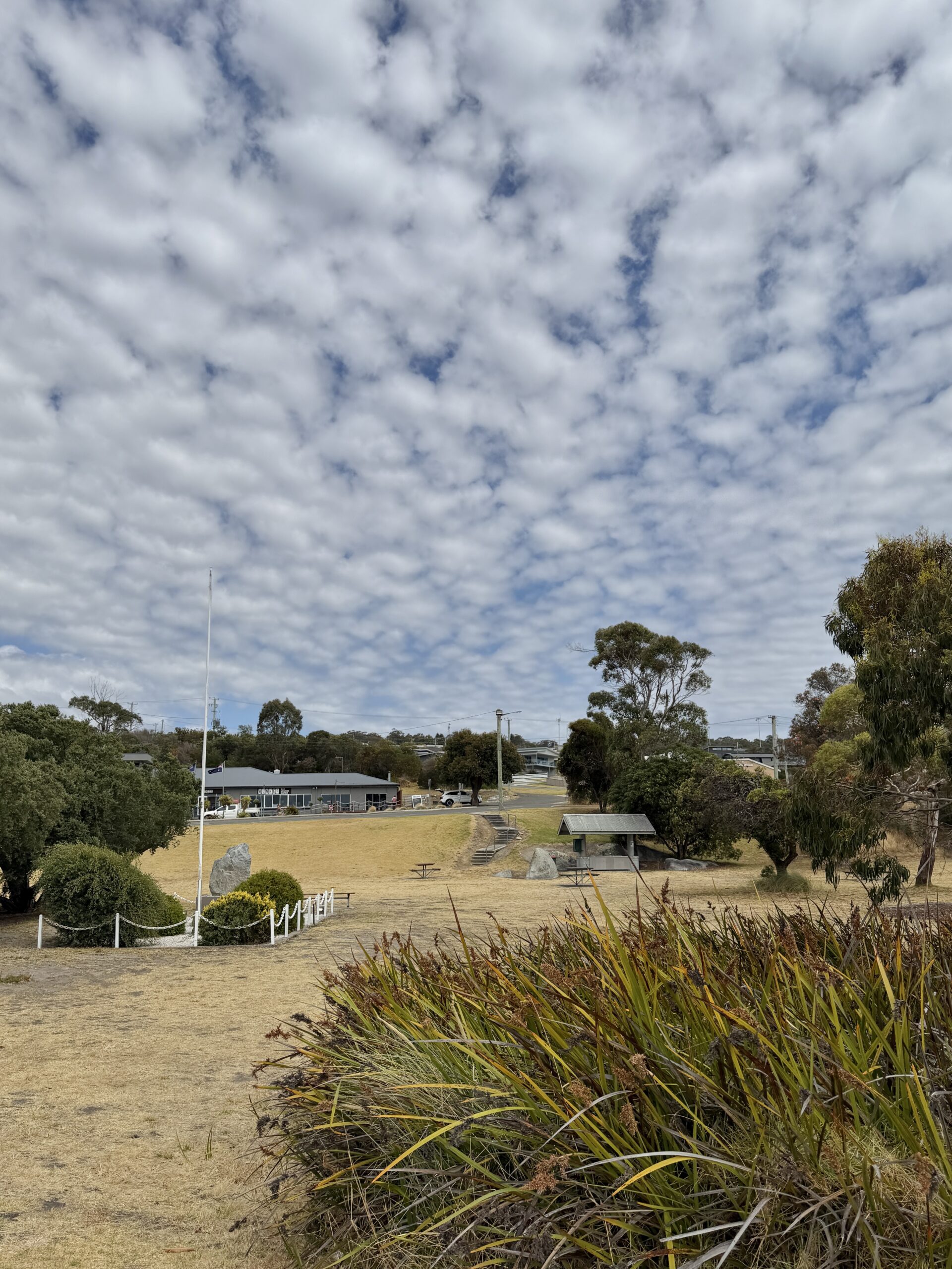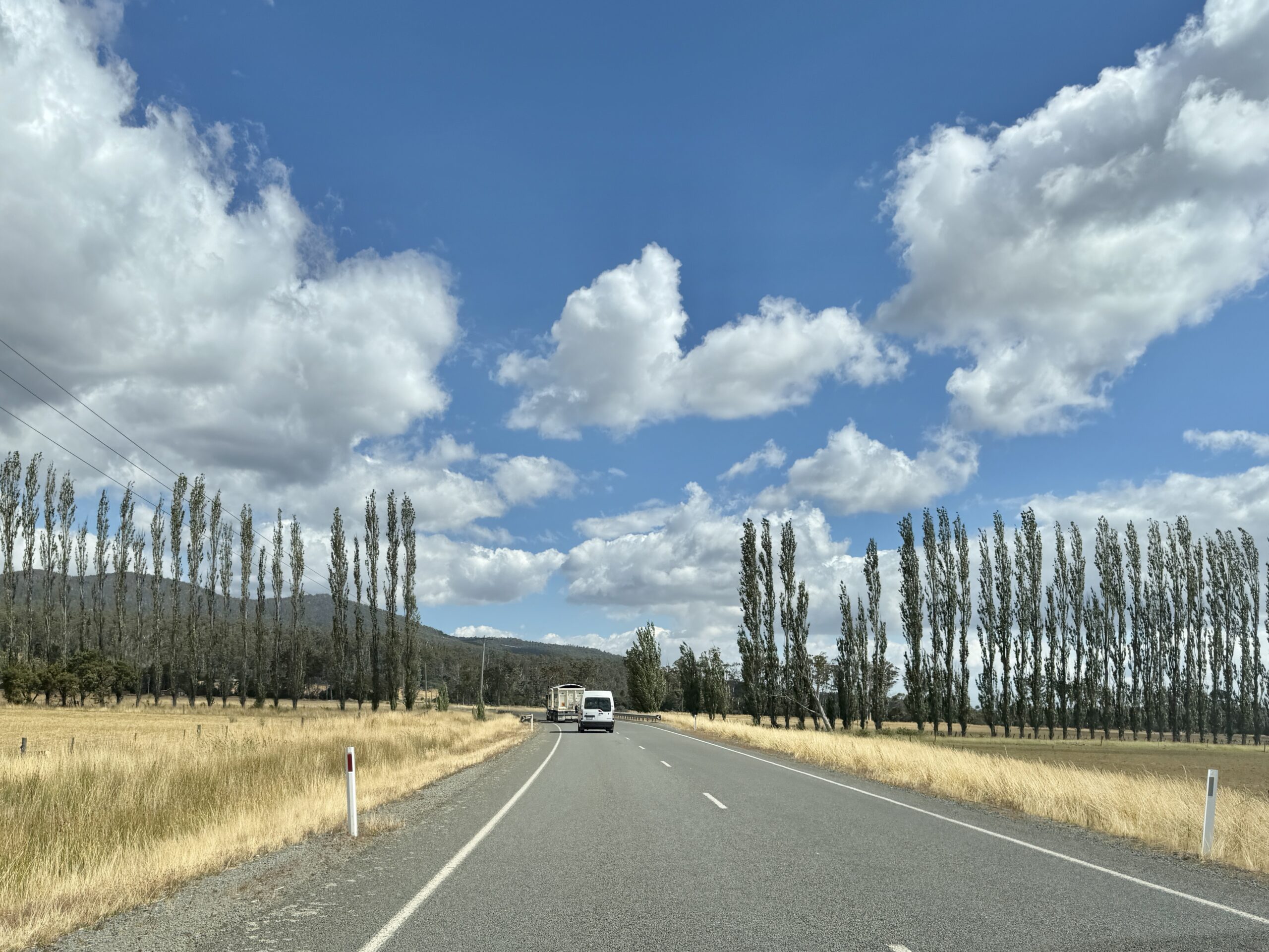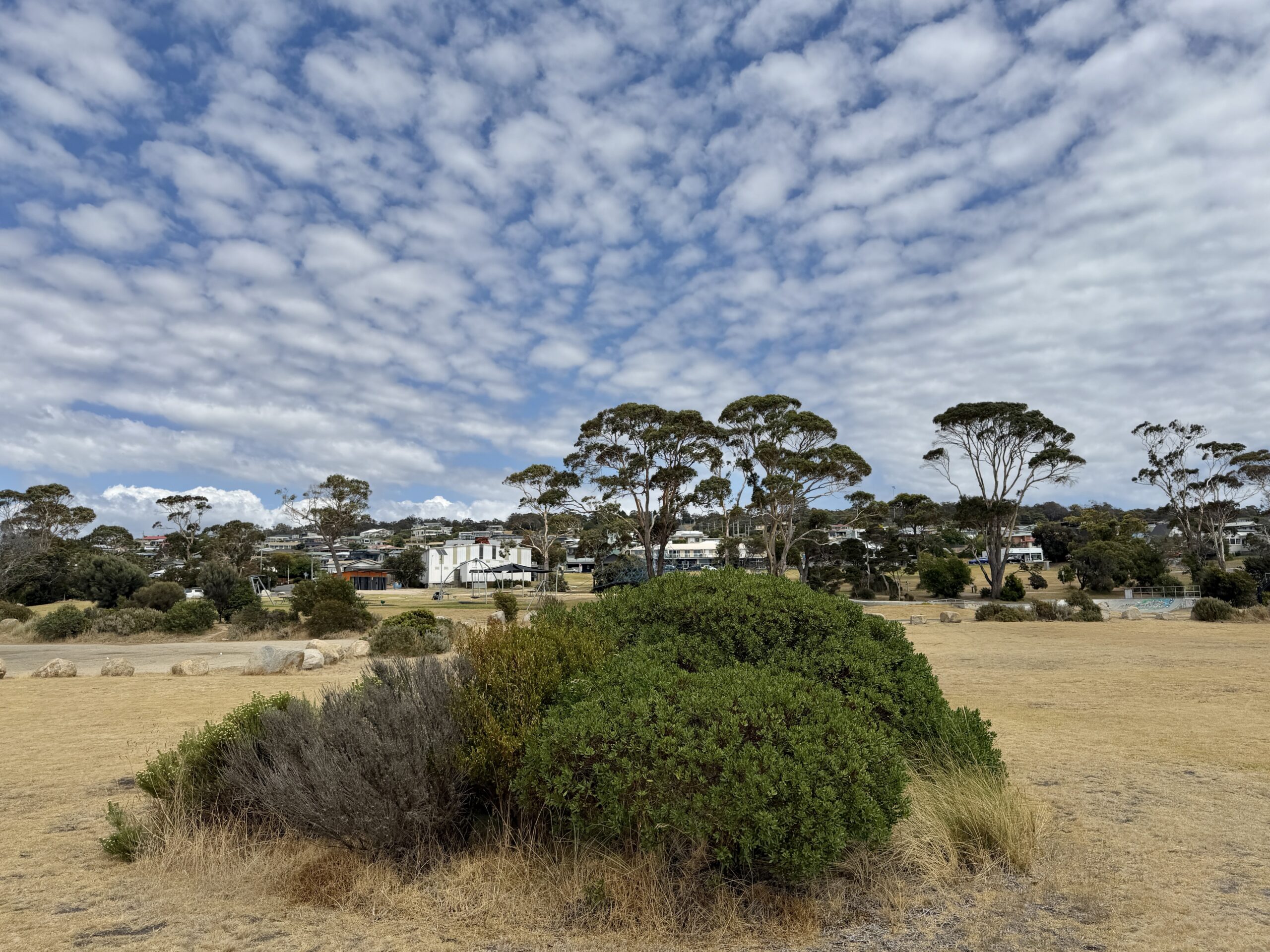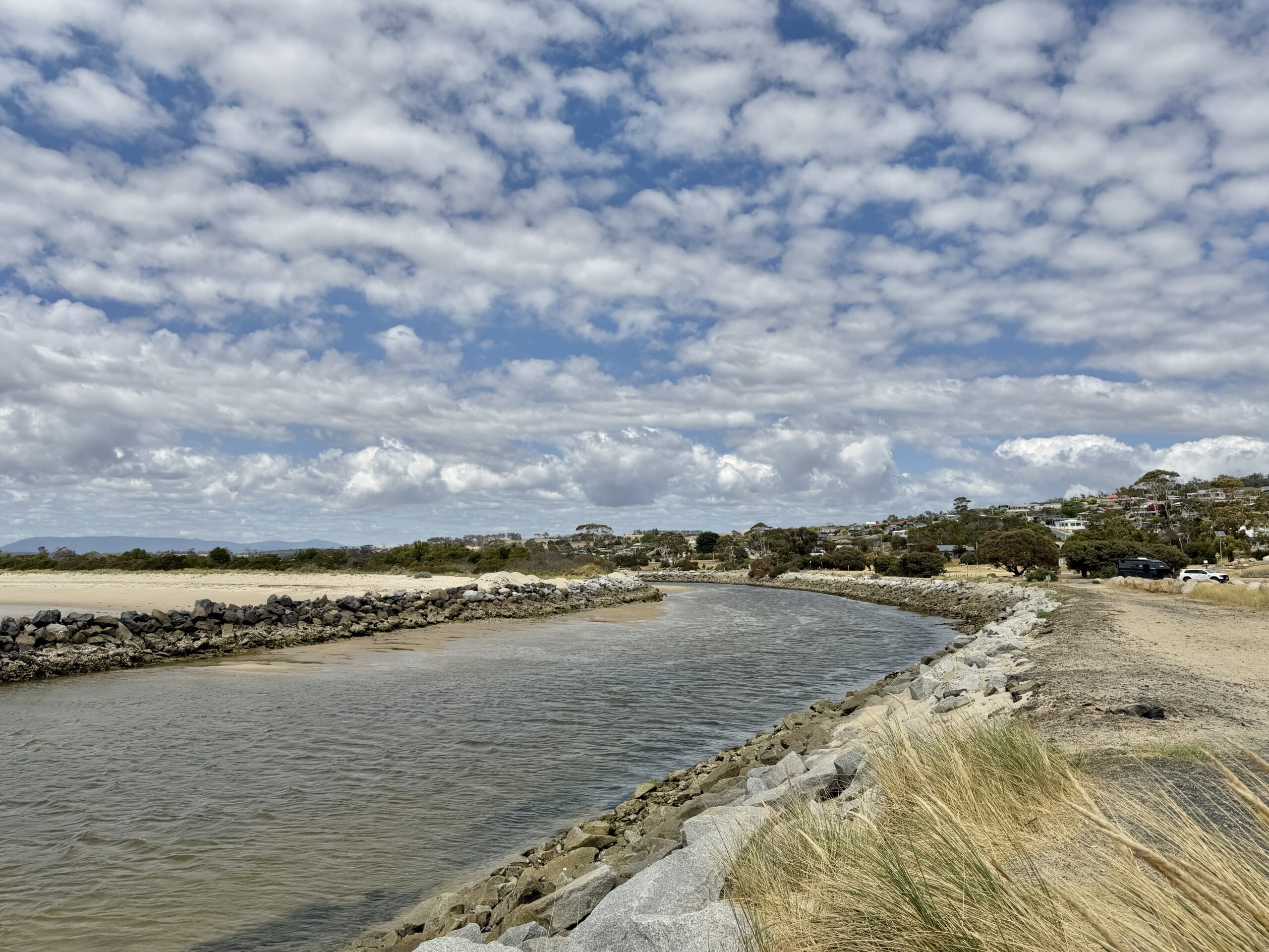 Wir sind immer wieder überrascht über die langen Fahrzeiten, die Google-Maps angibt. Deshalb suchen wir nach Ausflugszielen, die nicht zu weit entfernt sind. Mittlerweile wissen wir, dass viele Strassen nicht befestigt sind. Die Navi-Stimme warnt dann jeweils: “Caution, unsurfaced road”! Heute fahren wir an die Nordküste nach Bridport. Hier gibt es wunderschöne Strände, einen grossen Holiday-Park (Campingplatz) und nette Cafés. Wir lassen das Auto stehen und spazieren dem wegen Ebbe trockenen Hurst Creek entlang ins Dorf. Zwischen der Wasserlinie und den Häusern hat es gepflegte Wege und eine grosse Freizeitanlage. In den Bäumen ist lautes Geschrei zu hören. Es flattern pinke Vögel von Ast zu Ast: Rosakakadus. Im Gridport Café plaudern wir mit einem Paar, das vor Kurzem von Perth nach Launceston gezogen ist. Sie erzählen, sie hätten genug gehabt von der Hitze und würden gerne wieder einmal Wolken sehen. Ausserdem hätten sie ihre zwei Bordercollies rasieren müssen, damit die Tiere nicht zu fest leiden mussten unter den Temperaturen. Vor der Rückfahrt besuchen wir noch Rosey’s Rock und Daisy’s Dock. Zurück geht es über Scottsdale, Springfield und das Mount Arthur Forest Reserve. Das letzte Abendessen im Apartment besteht aus den Resten im Kühlschrank.