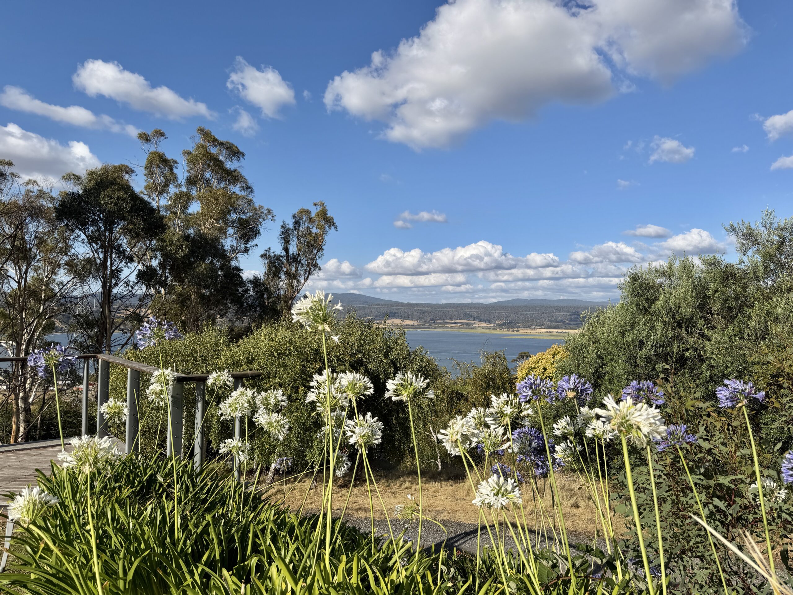 Die Apartments auf StelzenEinfahrt zum WeingutDieser nette Tasmanier fragt mich lachend, ob ich ein Foto von ihm machen möchte. Wir lernen ihn später als "lead distiller" Brett Coulson kennen.Ein blechernes KänguruImmobilien werden gekauft und verkauft. Wir sehen sehr viele "SALE"-Tafeln, meist mit Foto und Namen des Immobilienhändlers versehen.Unsere Unit 5Unit 5 zwischen Reben und EukalyptusRebenRebenRebenDie Trauben sind noch klein. Die Ernte verzögere sich in diesem Jahr um 2-4 Wochen wegen des schlechten Sommers.Hasen …… und Wallabies weiden zwischen den RebstöckenTamar Ridge WeinkellerRotwein (Pinot Noir)Viel Platz für Degustationen. Am Wochenende wird auch ein Mittagsmenu serviert.Wir setzen und an die BarZuerst probieren wir sparkling and white winesSchnapsbrennerei…Die Destillate lagern in alten WeinfässernBrennereiDie Anlage zum Ginbrennen kam während der Pandemie in Tasmanien an. Der Monteur, der sie hätte zusammenbauen sollen, durfte aber nicht einreisen. So mussten die Leute vor Ort mit Video-Unterstützung selber montieren.Getreide zur Herstellung von VodkaAlle Gewürze die in den Three Cuts-Gins verwendet werden."Three Cuts" bezieht sich auf drei Rosen-Komponenten: frische Rosenblätter, getrocknete Rosenblätter und Rosenfrucht (Hagebutte/rose hip)Der "Lead Distiller" ist ein Tüftler. Hier zum Beispiel Gin mit Earl Grey-Tee, in einem Kessel in der Produktion hing ein grosser Teebeutel mit Hopfen.Käse-Plättli zum RotweinAuch bei den Weinen wird getüftelt (research)Warnung vor dem GartenTerrasse mit Ausblick …… hinunter ins Tamar ValleySpeisesaal im Rosevears HotelIn der Bar des Hotels stehen auch Three Cuts-spiritsAbendhimmelVor dem Rosevears HotelDer Fluss wirkt mehr wie ein SeeBlick zum anderen UferIn den Uferzonen wächst sattgrünes Schilf