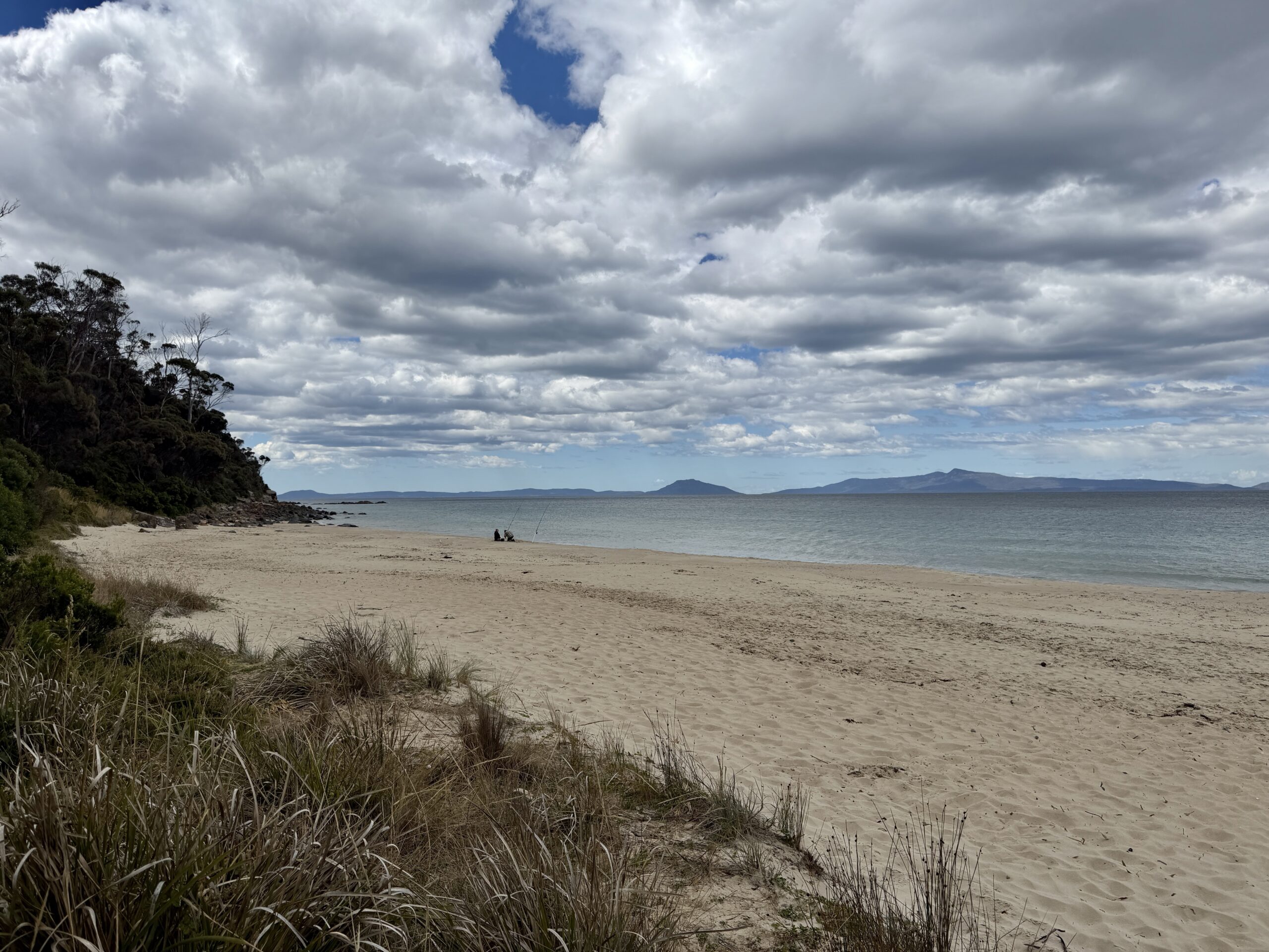 Wir packen unser Wärli zusammen und machen uns auf zum letzten Stopp in Tasmanien. Auf dem Highway y geht es südärts bis Campbell Town und von dort nach Osten an die Küste. Von der zentralen Ebene kommen wir durch hügelige Wälder an felsige Ufer und einsame Sandstrände. Im Woolworths in Sorell kaufen wir für den ersten Abend und das Frühstück ein. Die bisherigen Airbnbs waren sehr gut eingerichtet und in der Küche gab es immer Tee, Kaffee, Milch, Zucker, Salz und Pfeffer. In Primrose Sands stehen sogar viele Gewürze und Saucen in Reih und Gölied im Küchenschrank. Wir konnten wir das grosse “Beach Retreat” vergünstigt mieten und freuen uns über das schöne Haus. Leider ist es ziemlich kalt und wir bringen die Heizung nicht zum Laufen. Ein Feuer im Ofen wärmt das Wohnzimmer.
