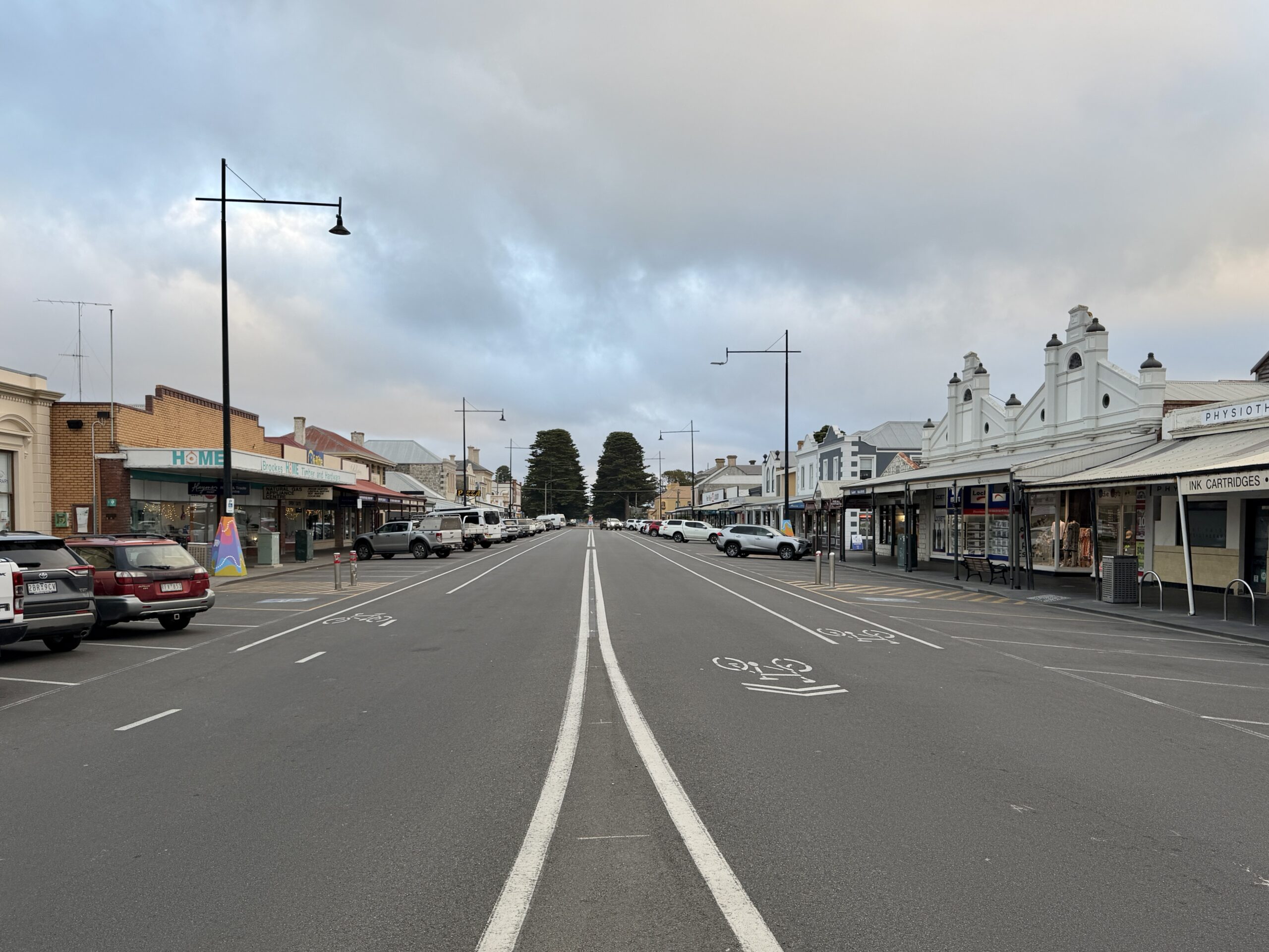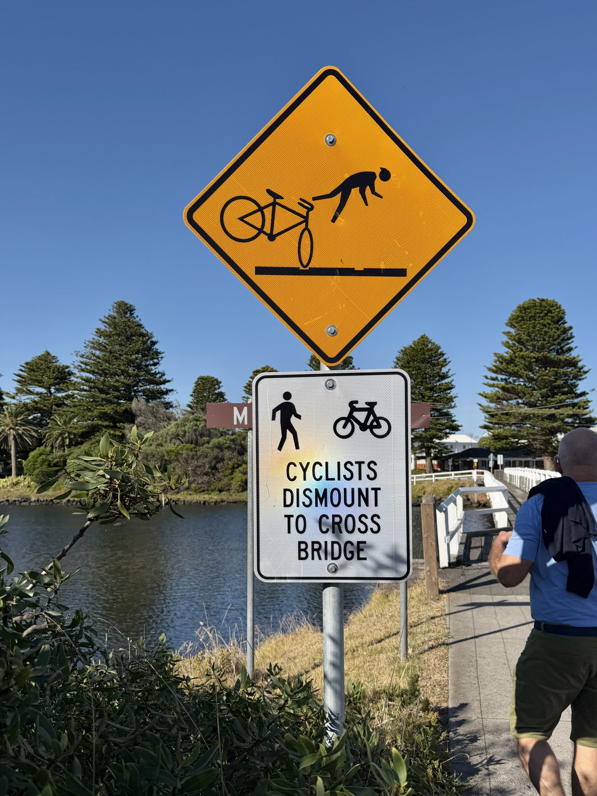 Gleichzeitig mit unseren Zimmernachbarn treffen wir zum Continental Breakfast im Motel ein. Im Kühlschrank hat es weissen und dunklen Toast, Butter, Milch und Orangensaft. Susie und ihr Mann, der 40 Jahre lang der Polizeichef von Carlton war, geben uns Tipps für das Fish&Chips und Thai-Restaurants in Port Fairy. Pünktlich um zehn Uhr checken wir aus und fahren los Richtung Meer. Die Fahrt führt mehrheitlich durch Landwirtschaftsgebiet, unterbrochen von lockeren Eukalyptuswäldern. Wir finden keinen passenden Platz fürs Picknick, deshalb essen wir im Auto im Schatten eines Baumes. In Port Fairy beziehen wir ein hübsches Zimmer und geniessen ein Bier am Moyne River. Vor dem Dinner spazieren wir Strand und Fluss entlang ins Städtchen. Glücklicherweise haben wir im Lemongrass Thai einen Tisch reserviert, denn das Lokal ist sehr gut besucht.