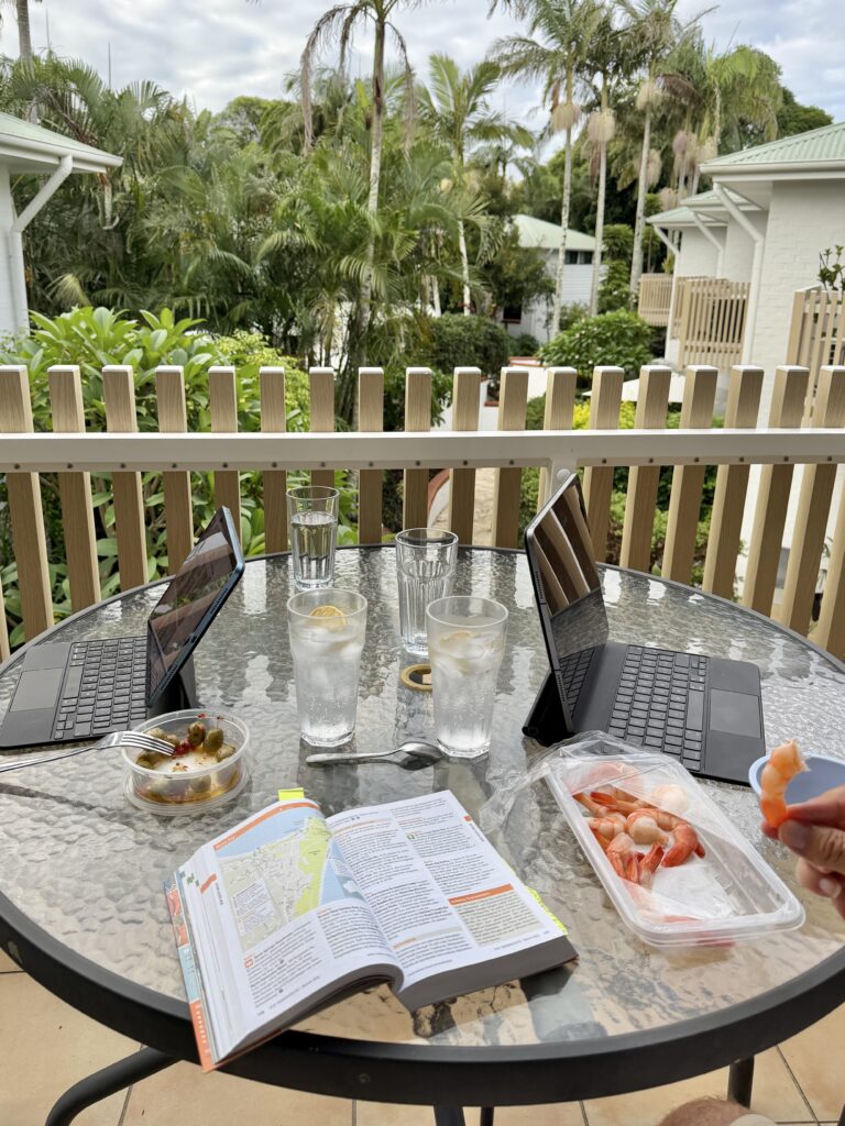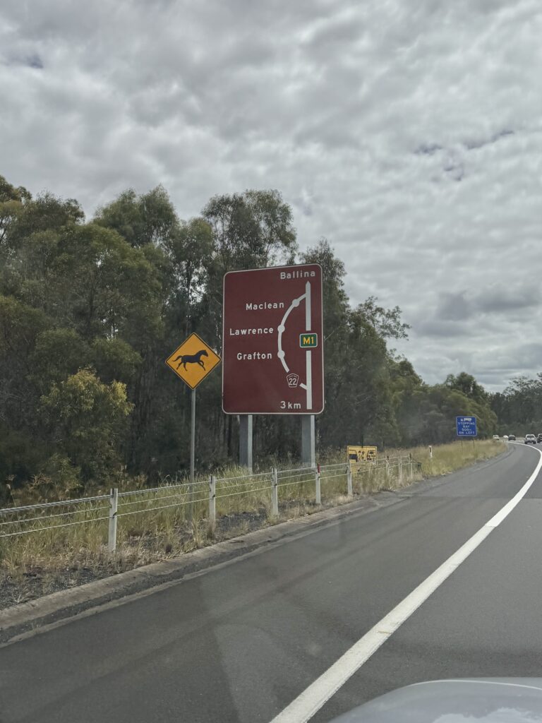 Nach der Abfahrt suchen wir noch einen der violetten Bäume, die hier überall blühen. Danach geht es auf einem der Tourist Drives nach Coffs Harbour zum Holden-Museum. Wir schauen uns die Autos an und plaudern mit der Aufseherin. In Emerald Beach gibt es eine Kaffeepause, bevor wir auf der M1 weiterfahren bis Ballina. Wir kommen durch Eukalyptuswälder, über grosse grüne Weiden und vorbei an Obstplantagen. Im Mündungsgebiet des Clarence Rivers und des Richmond Rivers gibt es auch grosse Zuckerrohrfelder. Dort verlassen wir den Pacific Motorway und fahren auf der Coast Road nach Byron Bay. Der Benzinpreis ist übrigens um fast einen Dollar gestiegen, seit wir in Australien sind (1.69 $ auf 2.55 $). Nach dem Einkauf im lokalen Woolie (Woolworths) checken wir im Ulysses ein. Der Zugang zu Garage und Apartment ist schlüssellos per Code, der auf der Airbnb-App kommuniziert wird.