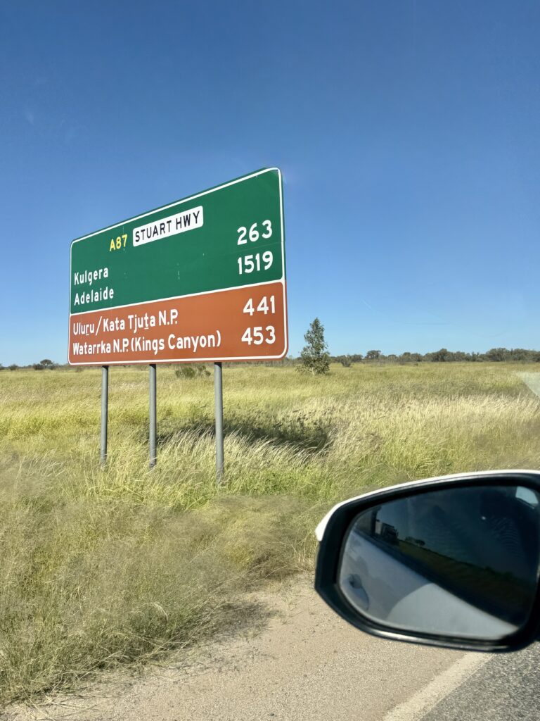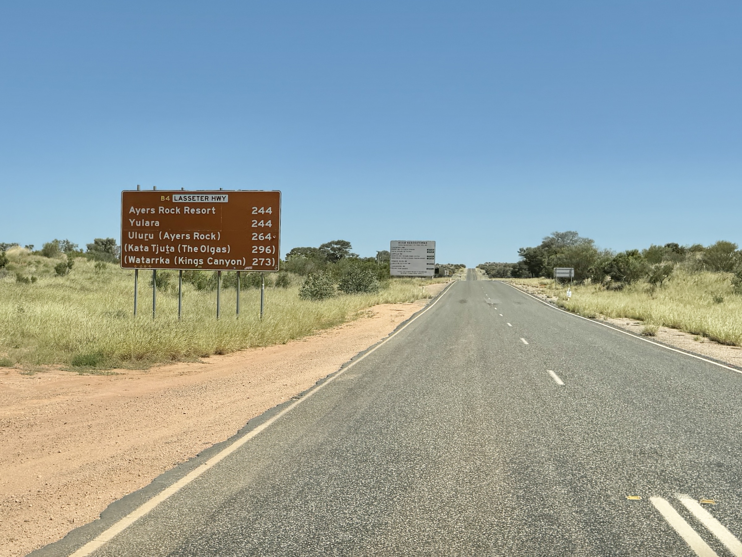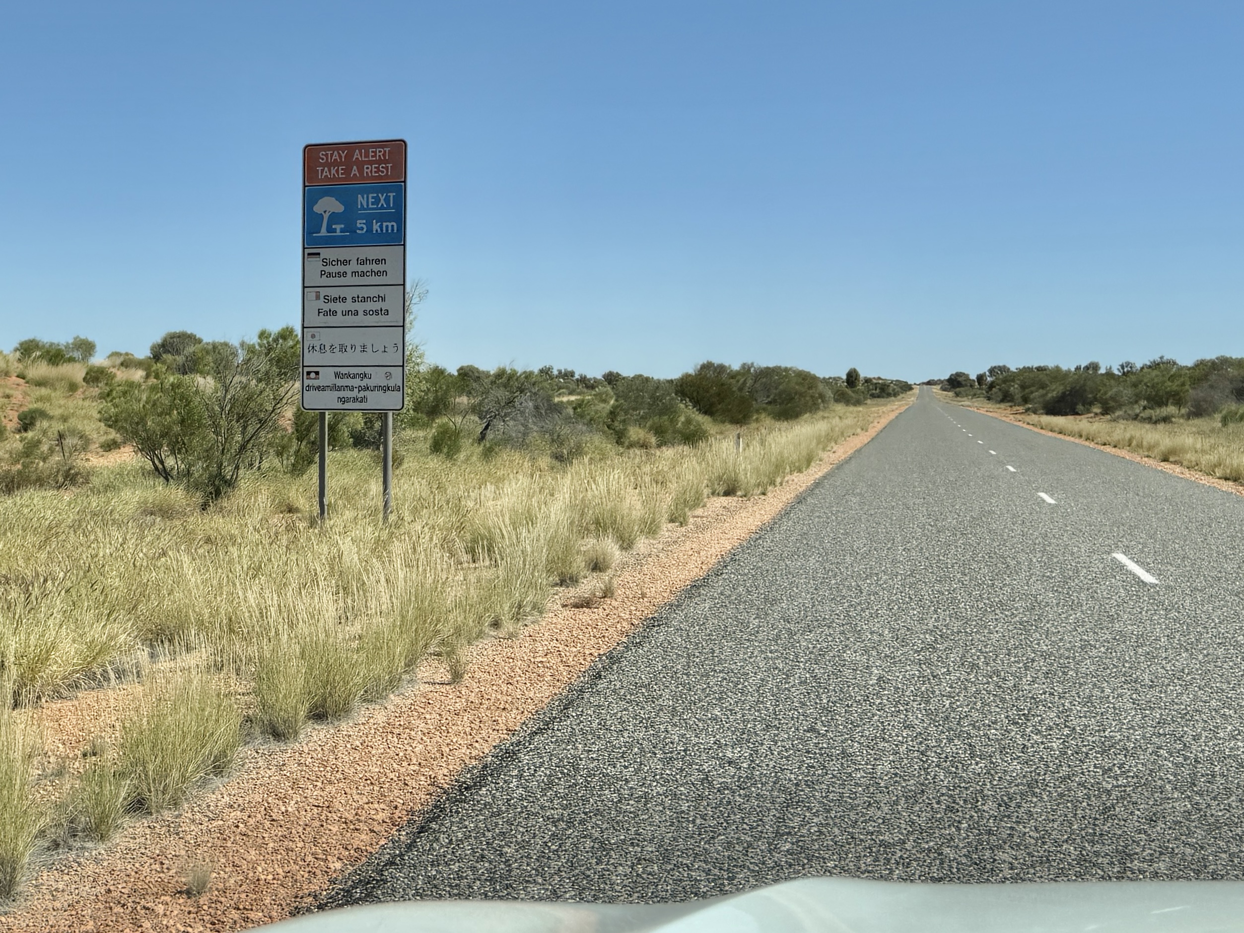 Wir müssen beizeiten aufstehen, weil die Strecke bis Yulara, dem Ayers Rock Resort, ziemlich lange ist.