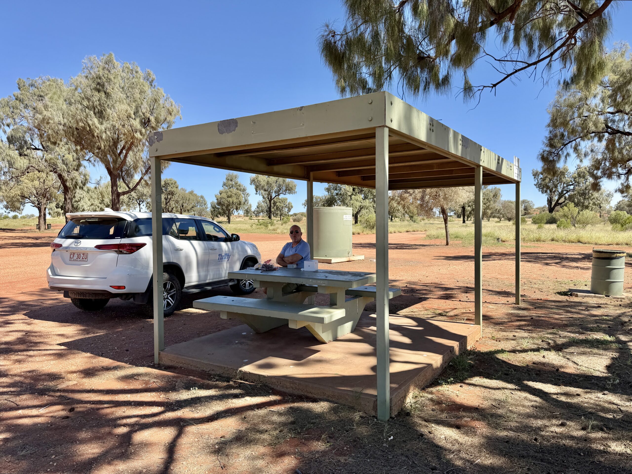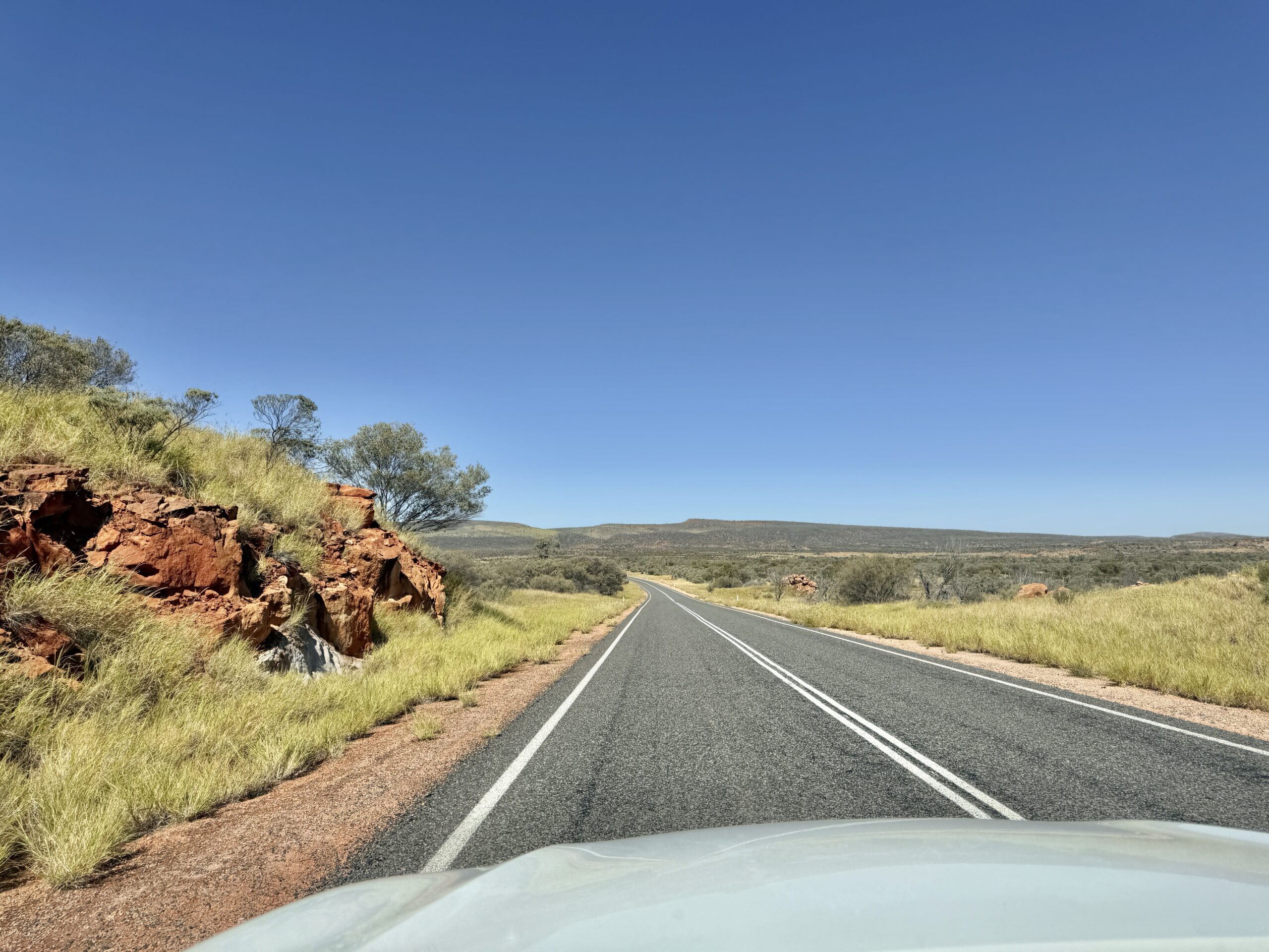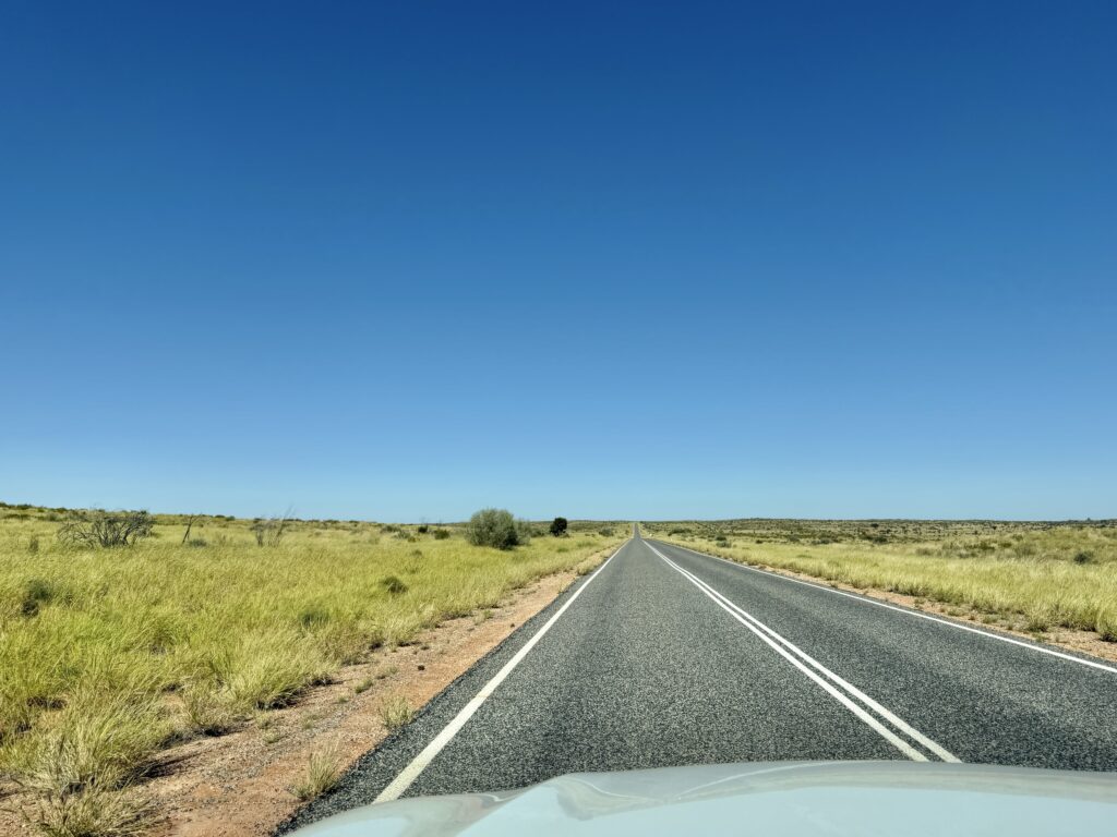Wir müssen beizeiten aufstehen, weil die Strecke bis Yulara, dem Ayers Rock Resort, ziemlich lange ist.